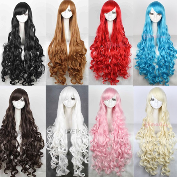 Curly White Blonde Pink Red Blue Brown Cosplay Wig 100cm Synthetic Hair Long