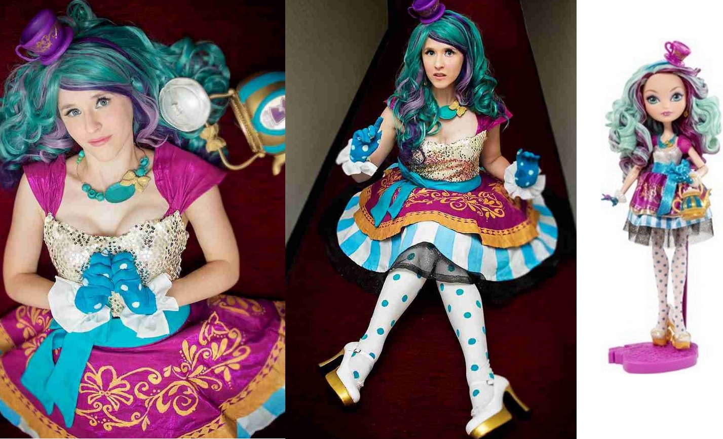 Free Shipping Ever After High Madeline Hatte Anime Synthetic Hair Halloween Long Curly Green Purple Cosplay Wig For Women